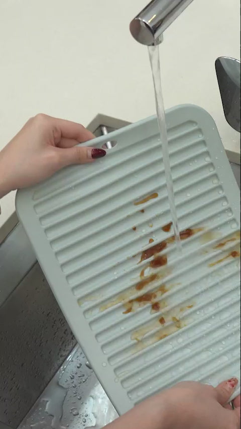The Tivano Silicone Drying Mat is the perfect way to keep your kitchen spotless. It collects every drop and dries your dishes in record time. No more wiping, no more mess, and no more moldy smells. Just a clean, dry kitchen in minutes!